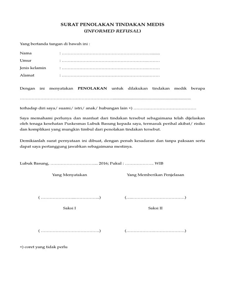 Format isian persetujuan tindakan medik (informed. Surat pernyataan menolak di rujuk ke rumah sakit.doc. S/d usia 42 hari pasca persalinan. Inilah pembahasan lengkap terkait contoh surat penolakan rujukan ke tempat tinggal sakit. Tapi mereka sodorkan surat keluar paksa .
